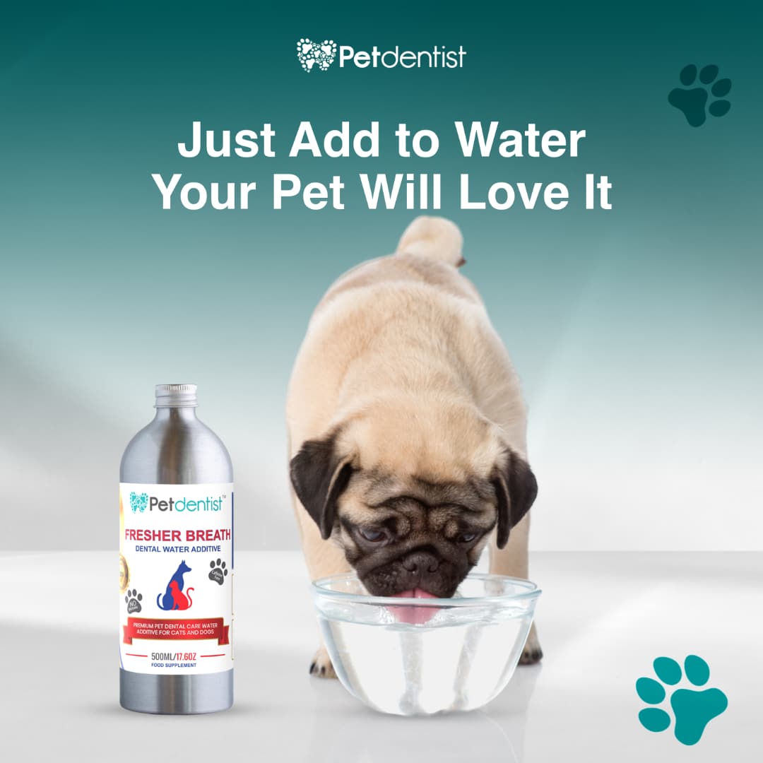 2. How do I use the Petdentist Water Additive?Answer: To use the water additive, simply pour 15ml of the solution into 200ml of fresh cold water and place it in your pet’s drinking bowl. Replace the water daily to ensure maximum effectiveness. There’s no need to brush your pet's teeth—just let them drink the water as they normally would. |